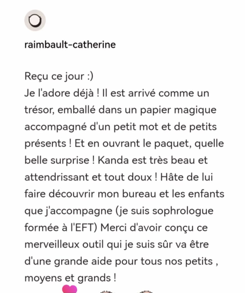 - En nommant et en faisant le transfert avec son ours Kanda, votre enfant accueille ses émotions et s’apaise.